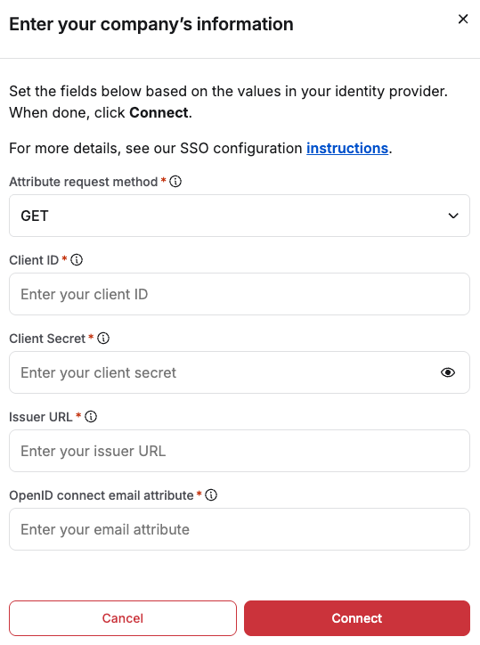 Retrieve OpenID Connect endpoints: We only support Autofill through issuer URL and do not allow Manual Input for endpoints. We autofill the following: authorization endpoint, token endpoint, userinfo endpoint, and jwks_uri.