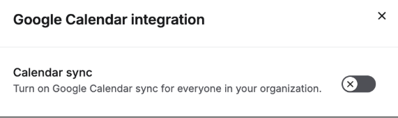 Then enable the Calendar sync toggle. This will enable the Google calendar integration option for all users in your company.