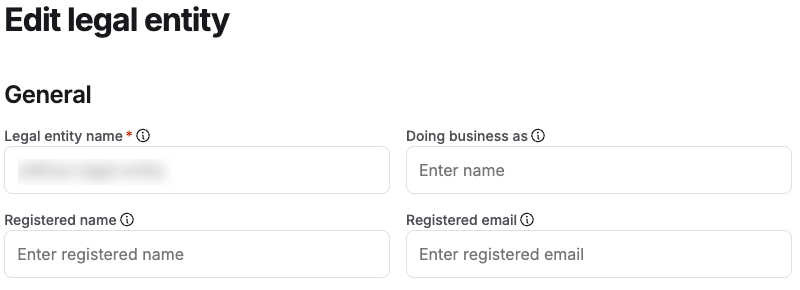 However, in some cases, a company may have two legal entities with the same name. If this is the case, you would enter the name that is shared by both legal entities in the Registered name field (the value in this field does not need to be unique). You would then enter a unique value in the Legal entity name field for each of the legal entities.